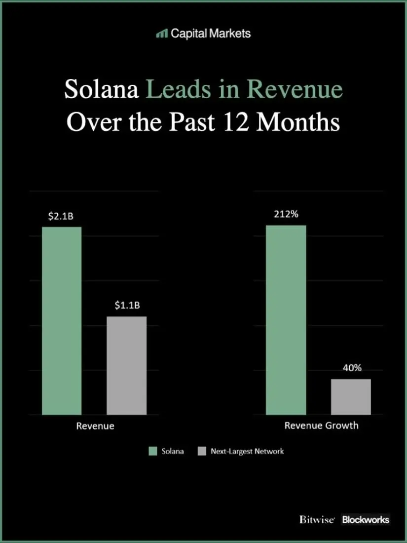 ソラナのオンチェーン成長は、依然としてその持続的なレジリエンスの核心的な支柱です。Capital Marketsが共有したデータによれば、このネットワークは210億ドルの年収で業界をリードしており、年成長率は212%に達しており、他の競争ブロックチェーンをはるかに上回っています。これらの指標は、ソラナの価格予測の基本的な論理を強化しており、単に高スループットのブロックチェーンであるだけでなく、実際の経済活動を持つ利益生態系でもあります。