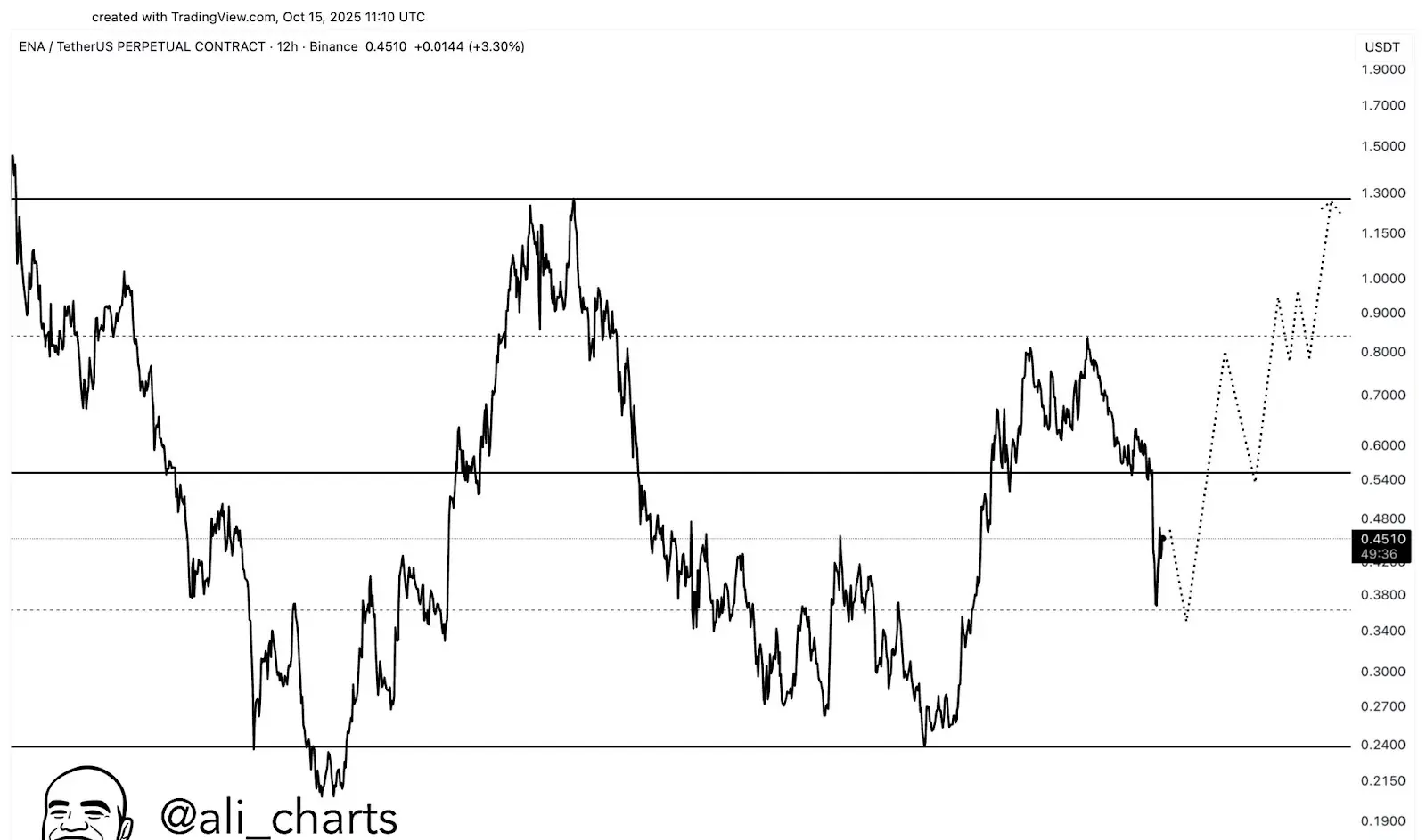 暗号アナリストは、ENAのマクロの強気な見通しは、30セントから40セントのサポートレンジを維持できれば維持されると指摘しました。