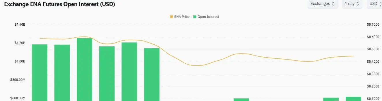 ここ数日間にわたり、ENA先物のオープンインタレスト(OI)は徐々に約$618 百万に増加しました。マイナスの資金調達率の中で、ENAのOIと現物需要の上昇が強気の見通しを後押ししています。