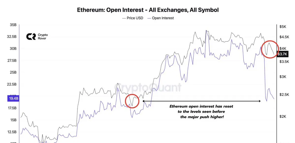 イーサリアムのオープンインタレストがラリー前のレベルにリセット:再び急騰が来るのか?