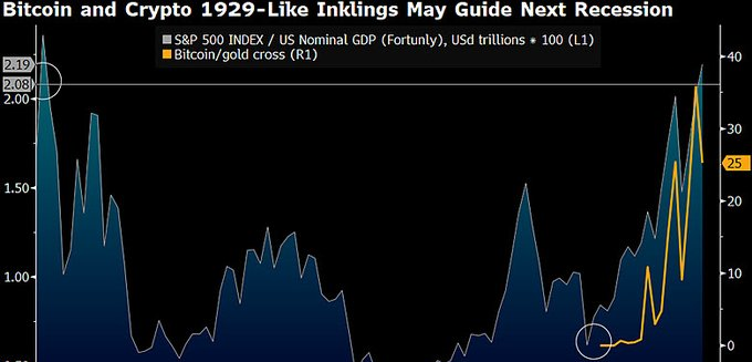 ブルームバーグ・インテリジェンスのストラテジスト、マイク・マクローンは、ビットコイン (BTC) の堅牢性が、過去のデフレ型の景気後退に類似した米国株式市場の崩壊を防ぐ重要な要因となる可能性があると警告しています。