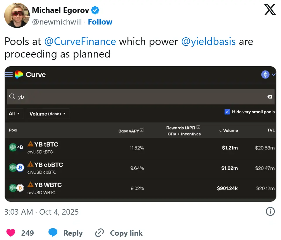 Este projeto foi criado por Michael Egorov, fundador da Curve Finance, e tem como objetivo transformar pools de AMM de produto constante em “arbitragem resistente” às perdas impermanentes (IL), começando com o Bitcoin. O YieldBasis não aceita a premissa de que os LP devem necessariamente suportar IL, mas mantém uma posição de alavancagem constante de 2 vezes no pool BTC/moeda estável, acompanhando o preço do BTC na proporção de 1:1, ao mesmo tempo em que ainda ganha taxas de transação.