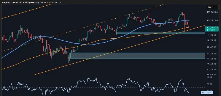 Ancak, RSI 40'ın altında kalmaya devam ediyor ve bu, belirgin bir boğa momentum kaybını yansıtıyor; fiyat hızlıca geri dönmedikçe, bu trend çizgisi kırılabilir ve bu da ana $100K bölgesinin altındaki seviyelere doğru bir kapı açarak piyasa trendinde genel bir ayı kaymasına yol açabilir.