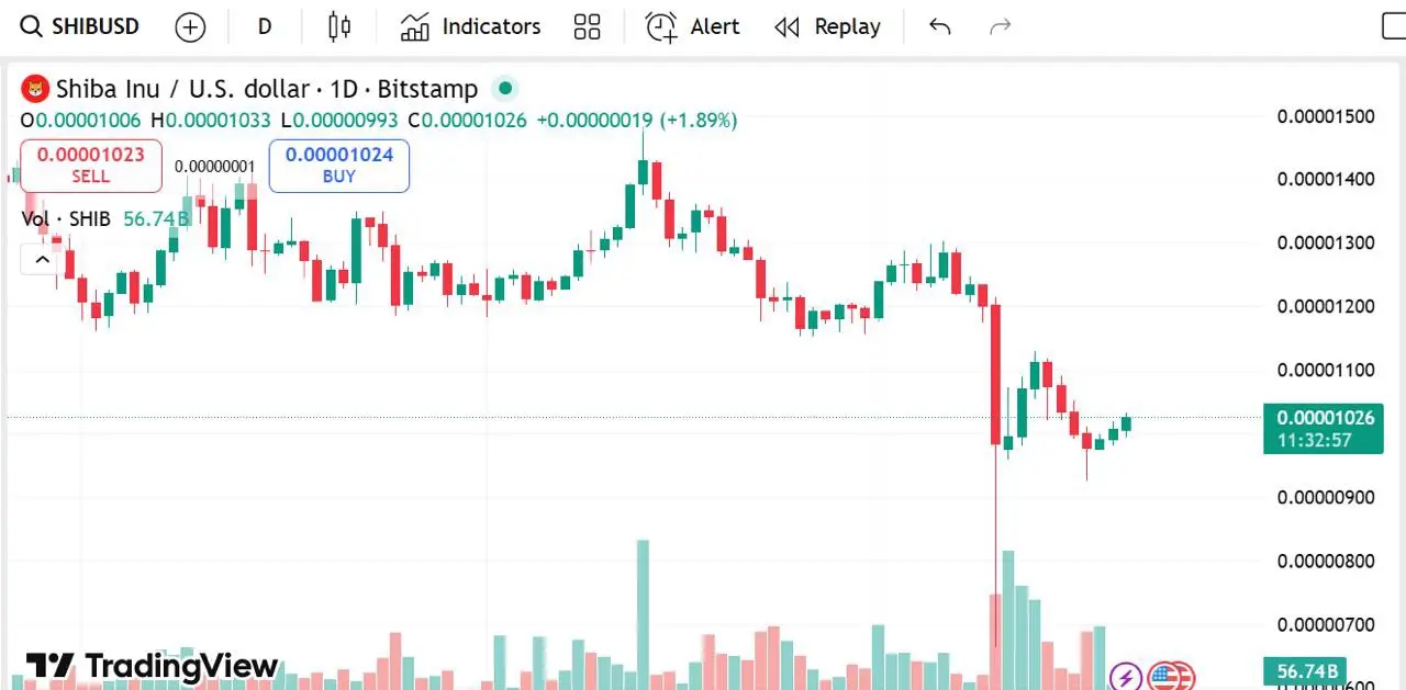Shiba Inu (SHIB) şu anda $0.00001023 seviyesinden işlem görüyor ve son 24 saatte %1.77'lik bir artış gösterdi, piyasa değeri ise $6.02 milyar. Hacim $143.53 milyon seviyesine yükseldi, bu da uzun vadeli perakende yatırımcı faaliyetinin bir işareti.