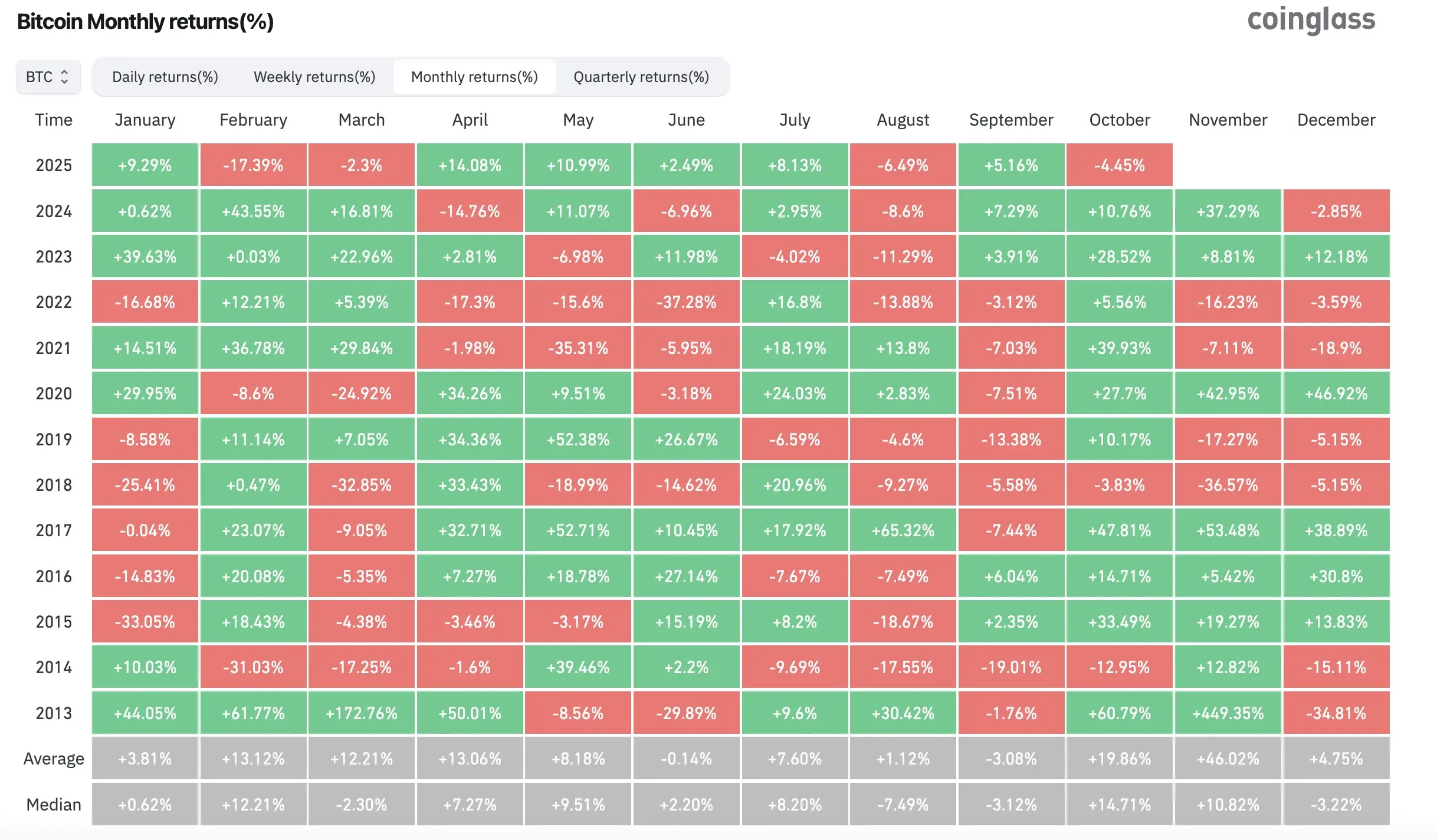根据CoinGlass的数据,比特币自本月初以来已经下降了5%,在周日亚洲交易结束时交易在107,000美元左右。比特币在10月份的历史平均涨幅约为19.8%,仅次于11月——这个月的平均涨幅最高,达到42%。
